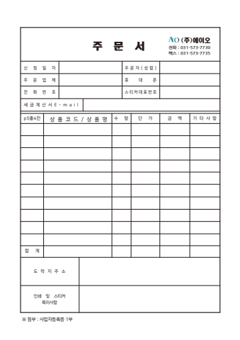 %uc8fc %ubb38 %uc11c %uc804%ud654 : 031-573-7730%ud329%uc2a4 : 031-573-7735(%uc8fc)%uc5d0%uc774%uc624%uc2e0 %uccad %uc77c %uc790%uc8fc %ubb38 %uc5c5 %uccb4%uc804 %ud654 %ubc88 %ud638%ub3c4 %ucc29 %uc9c0 %uc8fc %uc18c%u203b %ucca8%ubd80 : %uc0ac%uc5c5%uc790%ub4f1%ub85d%uc99d 1%ubd80%uc778%uc1c4 %ubc0f %uc2a4%ud2f0%ucee4%ud2b9%uc774%uc0ac%ud56dp5%uc9044%uce78 %uc0c1 %ud488 %ucf54 %ub4dc / %uc0c1 %ud488 %uba85%ud569 %uacc4%uc218 %ub7c9 %ub2e8 %uac00 %uae08 %uc561 %uae30 %ud0c0 %uc0ac %ud56d%uc8fc %ubb38 %uc790 ( %uc131 %ud568 )%ud734 %ub300 %ud3f0%uc2a4 %ud2f0 %ucee4 %ub300 %ud45c %ubc88 %ud638%uc138 %uae08 %uacc4 %uc0b0 %uc11c E - m a i l