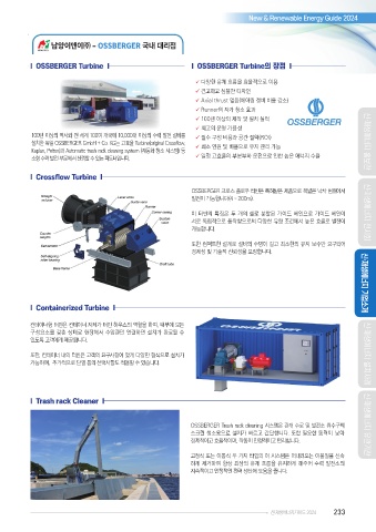 Kaplan, Pelton)과 Automatic trash rack cleaning system (자동화 청소 시스템) 등 최소 인원 및 비용으로 유지 관리 가능